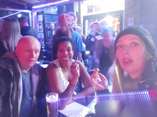 Roaring fire outside, which is all covered and closed in warm for me to listen to the live bands able to go for a gig if you like. Then go let my feet recover and enjoy my lovely pint of cider from the pump and not the fruity bottles, just apples. Seeing people young and wonderfully still rocking it older Seeing people you've know for years and also new and just enjoying the atmosphere. Love it!!!!👍❤️👍 Just want the Macc Lads to play there!! Come on...