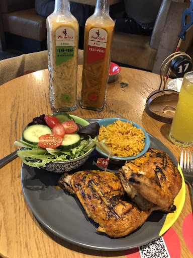 I booked a table for 12 of us to visit this Nandos as a group. When we got there, we were given an 8 seated table together and then a 4 seated table behind, completely separate. I said I wasn't happy as we had booked for a table of 12 to be sat together, not seperaratly. This was sorted and the server moved a couple, which they were happy to do, from the end table so the table could join the 8 seated table. We ordered drinks, all fine. We ordered the food and it took a long time for the food to come out, we understand it was a big order, but a lot of the food was sat under the heat light for ages as we could clearly see it. When the food arrived, it came out in dribs and drabs, the corn was dry and hard, the mashed potato had a skin on it, which wasn't eaten, and the garlic bread was rock hard. Not once during our meal did anyone come over to check on us or to check our food was okay. At the end, we stacked our plates up in the middle of the table ready to be taken, so we could make room for dessert, and the waitress walked passed the table at least 3 times without clearing the plates, even though she was cleaning the tables around us, and not doing anything that could stop her from clearing some of the plates, in the end we decided the service was so poor, we'd go and get dessert elsewhere. This isn't the first time we have had bad service from this store and I don't think we will return again. Very dissatisfied. Staff were...