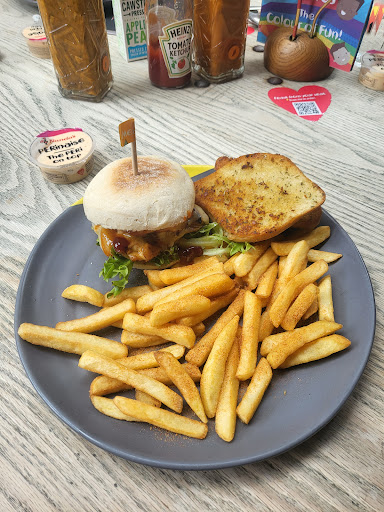 I arrived as part of a group of 11 on a slow rainy Thursday lunchtime. The restaurant was very quiet which suited us since we only had an hour for lunch. We quickly placed our orders as other people arrived. Slowly our food arrived but there were lots of mistakes with the orders - many meals were sent back. We also noticed our meals were delivered in a random order but that also other tables and people who had arrived after us were also being served quicker than us.