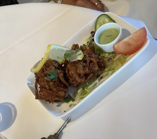Ordered poppadoms 90p each and the chutney tray £3.50 And onion bhajis! These were amazing! The kind waited advised there were 2 for a portion and there was 3 of us ..... I said it was fine, but when he returned with them they had given us 3 which I thought was lovely and a very nice little touch!