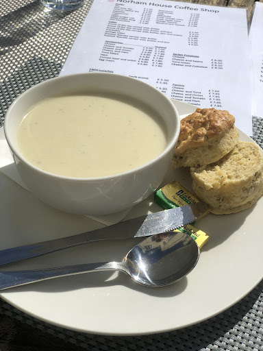 This very charming place is in Cockersmouth in Cumbria, England. You go through a very short covered alleyway to get there. It's a typical English tea/coffee room, lots of oak and little knick knacks. The atmosphere is soothing and the service friendly.