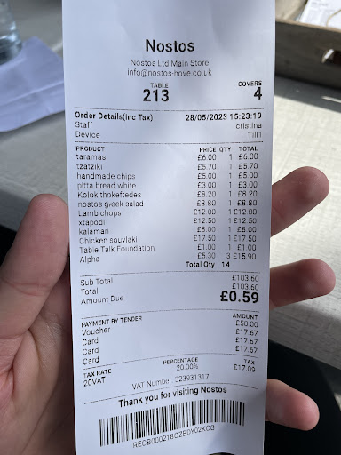 When it came to food, one of my friend's ordered the vegan Tzatziki and she got something different that wasn't nice at all. the waiter told her that they got her order wrong and will offer us 10% discount and if she didn't like that dish he would get her another one. Part of the tiziki dish was a small plate of Greek bread. she returned that dish because it wasn't nice at all and she wasn't aware that the bread needed to go back with it as they have served our starters with the main . She ordered another dish. My catch of the day fish dish was full of bones which made it annoying to eat even though it was nice but lacked seasoning. what a shame!!!!