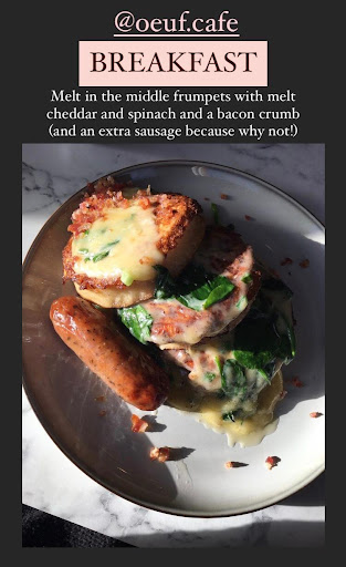 And it’s like the menu has been created in the same way! The Frumpets section is the creators at their giddiest - a concoction involving a stack of crumpets battered (somehow) in French toast that Oeuf have actually trademarked, which is brilliant, with toppings ranging from peach melba to fried chicken. There’s an entire egg (“oeufs”) section, including “oeuf & surf” which makes me mentally pronounce the French like a true Brit abroad, and then combinations and little details everywhere that make you want to interrupt whoever you’re dining with to point out - “yes I’ve seen the watermelon ceviche, thank you” - and subsequently give you huge decision anxiety: “oooooh, the Caesar salad comes with crispy chicken skin”.