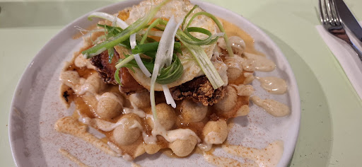 The sad truth though is that I didn’t love my breakfast. It’s my fault really, as I asked for the hot honey chicken waffles when, it turns out, I don’t really like waffles. I had to ask Mich if that’s what they were meant to taste like - stodgy and almost a bit stale - but “yes Joe, that’s exactly what they’re meant to taste like.” The fried chicken was awesome - better than KFC, which is still sadly the standard-bearer in my eyes - although the honey could have been hotter for my taste. We got a side of the rarebit rosti bites and I wished the chicken was served on those instead.