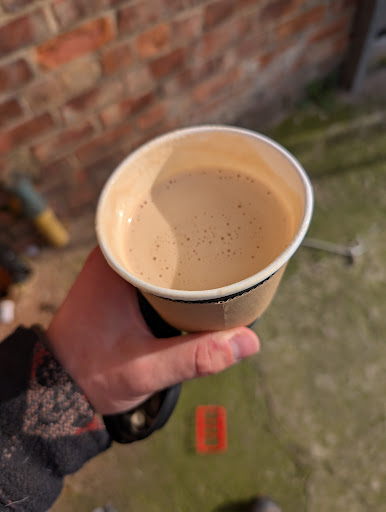 I tried dark hot chocolate with brownie and later got a Halloumi bagel.