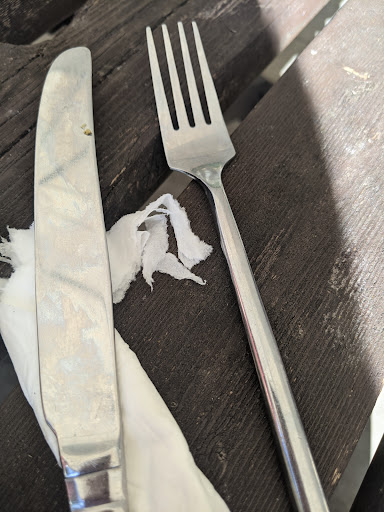 Table, drinks, and menus sorted quickly. We chose to sit inside as it was a bit dark/cold out (October visit), but I would imagine it's spectacular in the summer to sit outside with the river running by.
