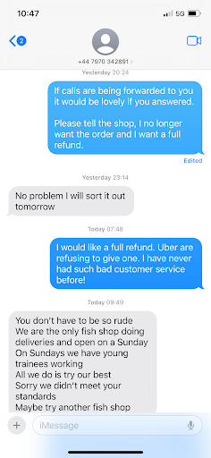 Read moreDo not order from this place! Absolutely disgusting customer service. Made a delivery order through Uber the delivery time kept getting later and later. Rang the number and a women answered she said she would call the shop and get back to me. I made it clear if it wasn’t going to be here by 8.15pm I didn’t want it as it was too late. No food arrived by 8.15pm and I didn’t get a call back. I tried calling again and they didn’t respond at all. 8.35pm and the delivery driver turns up so I refused the food. Please see the photos for how I was spoken too. Never been talked to so badly before. I would never order from this...