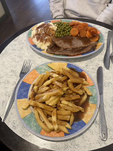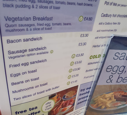 I have given a one star review because zero stars isn’t an option. This is the worst food establishment I have ever visited! I had intended on ordering the highly advertised ‘all day’ breakfast, only to be told that it wasn’t available ‘all day’, funny really as the menu says otherwise. Never mind I am adaptable if nothing else and I ordered another ‘special’… mince pie with chips and veg. I know what you are thinking…. Sounds good. Well sounding good is where it stopped. I don’t know what the pastry in the pie was, maybe plastic at my best guess, truly awful. I’m not sure how they managed to get mince and gravy wrong either, I say gravy it was more like brown water. Well at least the veg will save the meal… just peas actually and even they weren’t cooked properly. I cannot stress enough how bad this place is. It’s like a cheap hotel breakfast bar, dirty, out dated and horrendous food. The place should be...