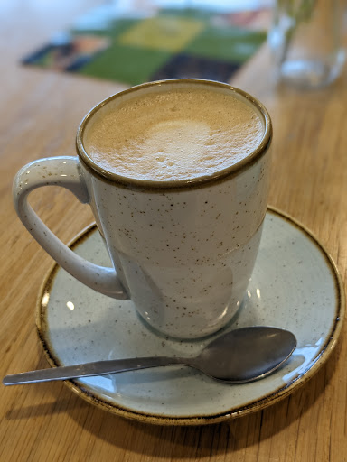 I bought my own lunch and just needed a small place to sit down and eat for 5,10 mins. The cafe was more or less empty and there was plenty of seating available. I had some people with the church and was told I could sit and eat in the cafe as the cafe is associated with the church too.