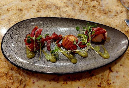Read moreI don't like being negative so I will start with the positives! Staff were friendly and my glass of wine, house white, and my pudding, sundae, was very nice. I started with spicey ball things and that's where the disappointment started! Three tiny bullets of spiced up falafel that were so hard it was dangerous for the teeth, on a smear of something quite tasty and three stalks of something green chosen from the special board. Not cheap but tiny and difficult to enjoy. Then I had a budda bowl, this was okay but the £3.50 flabby cold strip of haloumi was not great and how anybody can justify charging more in a budda bowl for that is a puzzle! Again not a cheap dish at £14.50 and although uninspiring it was fresh, more could have been done to add flavour. My ice cream sundae was nice and I enjoyed it. None of our table ordered coffee so I can't say if that was of any good, we didn't discuss our food but given we all didn't order coffee and drinks maybe they felt the same about their food? We normally go to town on the extras so it was a surprise nobody did. This place, in my opinion, has issues with identity, a menu so wide they loose not only focus but quality. The entire meal was just over £170.00 and with service £190.00, no bottle of wine and no large drinkers so it was mainly food and 4 of us. Upstairs was very noisy with very poor sound quality so not a place to head for on a Saturday night to chat over dinner, that's our fault for not checking ahead. Small tables so drinks constantly had to be moved to make space. The tables were laden with water glasses, bottle, menus, salt and pepper before anybody added wine glasses, cutlery and plates! I'm not sure I will return, and to be fair many around us were enjoying the environment, two 50th birthday parties with two rounds of happy birthday singing and cakes, they were really enjoying the meal, so maybe just not for me...