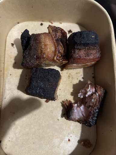 Read moreFood was burnt to a crisp and i got barely any and was freezing cold, cracked my tooth trying to bite into the burnt skin of the pork belly, called them up and they told us that the charcoal flavour and appearance was normal and they cant do anything about it when we had ordered from them multiple times before and had much better food. In the bottom right corner you can see a batter crumb which was actually fried chicken so i dont know if you cross contaminated them or what because why else would there be chicken crumbs with my pork belly? Overall disappointed