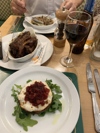 As always, we were greeted warmly and seated promptly. I had the house red, the pork ribs and goats cheese bruschetta as a starter and then the lamb shank with a side of super tasty vegetables for the main. And of course I had to have a dessert - cheesecake!