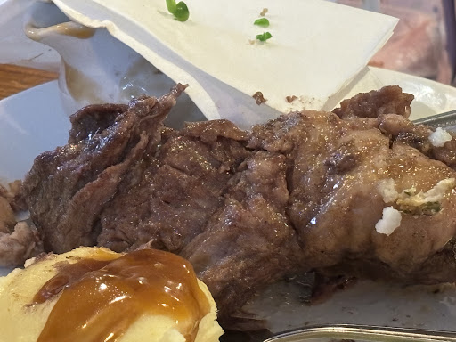 The food was okay, i elected for the mixed grill, the gammon was okay, the steak was good, the sausage was a bit under cooked (looked like it had been boiled) and was low quality, the chicken was quite slimet.