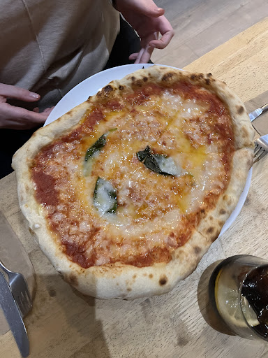 Read moreWent in for a mid week pizza for date night, went for the Calabria. When I got it, the pizza was covered in burnt flower on the bottom. Being British and not wanting to ruin date night, brushed it off as I ate. I was in that weird position as a customer where I wanted to send it back but if I did then my partners pizza was Goona be cold / eaten and it would have caused a scene. Which after a long stressful day didn’t want to end on a low. Not fair to put customers in the position really. The burnt flower made it like sand to eat and the base was crumbling as I ate and brushed off. At the end the plate was covered in sand. I let the lovely waitress know and she did make the effort to tell the chef. Their response was it was too much flower and burnt. I think for the price of £16 pounds a pizza, they could have made a good will gesture and gave me a slight discount but they didn’t. They thanked me for my feedback, but would have been nice to correct the situation. We also had a bruschetta starter, the dressing was nice and tomato’s fresh just the bread that it was on was really hard and dry. Would have scored higher if they put customers first as part of their service. Also a couple came in and they stuck them in this awful 2 table in the corner with no lights. There was table of 4 free but the waiting staff asked what looked liked the manager / owner and he said no to leave them and instead told them to put the cupboard light on that they were next to. Could see their faces squirm too. I think for the price and market they’re aiming towards could up their quality and customer...