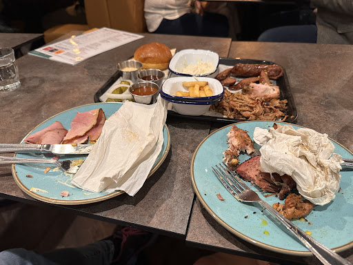 Read moreNot a great experience. After reading all the great reviews we couldn't wait to try here after finally getting a weekend to ourselves to travel up to Kendal from Liverpool. We booked for Saturday night and were one of the first seatings. They informed us the restaurant wasn't open but all bookings were to take place in the taco place which was fine and the lovely server showed us there. Once seated we got some drinks, nearly £5 for a 330ml bottle of coke was a lot but we thought we were treating ourselves. We were then informed they had no brisket and therefore couldn't do anything with brisket. We chose nachos to start which we thought were £4 but ended up £10 with two watering tomato salsas but a nice salsa Verde. When ordering the waitress told us she needed to check we had any as they used the last of them the night before. She then informed us they had prepped more. Not worth £10 for a plate of nachos unfortunately. I got the buffalo wings which she then had to check if they still had any. I was informed I would receive the last portion which I was happy about. The buffalo sauce was quite watery and barely covered the wings but the flavour wasn't bad, just subtle. Partner for the ribs to start which were lovely. I then chose the pulled pork burger and partner had the Dino rib. The Dino rib had a very intense flavour that ended up knocking me sick it was that overpowering but it was nice and moist just overseasoned to death. My pulled pork burger was inedible it was that dry it was similar to eating cardboard in a bun. It was also quite bland unfortunately. I was quite upset by this point as I couldn't eat my burger and the Dino rib wasnt too my personal liking which is I understand may have just been my opinion but it was unlike any rib I've had before. I imagine the brisket if it were there would have the same seasoning on. I informed the waitress the burger was too dry to eat and she asked if I wanted another, I said it was ok but thank you. I unfortunately didn't eat my main except for a handful of chips. They took the service charge off as an apology but that was it. At least it was something. Overall £89 for a meal I didn't really enjoy apart from the wings and some nachos. Overall there were too many things unavailable that if it were my business I simply would have closed and apologised. Instead of having a full night we decided to head home after this as our hearts just weren't in the night anymore after this... Unfortunately won't be back but hope...