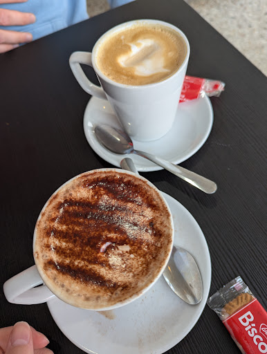 What a disappointment! Holidaying in the area and as we drove past we thought this looked a lovely little place. Got there and I was surprised that there were 3 steps to walk up and down and no handrail. Only appeared to be seating outside, along with a dustbin. The tables were rotating customers quite quickly but no one came out and wiped or cleaned the tables in between customers. The waitress taking the orders was friendly and helpful. We ordered a hot coffee and an iced coffee along with a sausage roll and a biscoff slice. We went and sat at a table outside, there didn't appear to be any seating inside. Another girl came out the back a few minutes later and threw two paper bags on the table and walked away. No "enjoy" or "which one is the sausage roll?" etc. I was really shocked. So no plates, no napkins, no service. I went in and saw some napkins on a shelf in the window. I was looking for cutlery, like a knife and saw one in a pot I was just about to take but then saw it said above it, thank you for putting your rubbish here! Right at the side of the napkins! No toilet either, not even for use by disabled people, which I thought was illegal??! A couple came in just behind us and sat by us and they were saying "how appalled" they were! And whoever named the biscoff slice clearly hadn't made it with any lotus biscoff as it didn't taste anything like. Yes, all round a BIG...