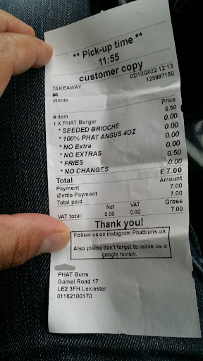 Read moreHaven't used Phat Buns for a few years and thought we'd try them out again after so many other disappointing takeaway away establishments these days. Decided to push the boat out and go for the what's new menu and settled for the Premium Brisket Burger weighing in at £15 and the Philly Cheese steak meal for £16.50(+£1.50 for the lemon pepper shake on the chips). My partner went for the brisket only to receiver the flatist, soggyist, over sauced and underwhelming waste of £15, the meat was very nice once removed from the falling apart bun and 90% of the gallon of sauce and "slaw". The Philly CS was my purchase, got more for the money with this one - £16.50 for a loaded baguette, handful of chips and the best looking can of drink I've seen in a long time: the Phat Blue Razz (tasted great as well). The PCS's meat was very nice and the cheese started off well but after discovering I also fell to the sword of the over enthusiastic sauce guy I barely made it halfway through before starting to full very full on a truck load of melted cheese. The chips were as expected cold, would of been nice when fresh, shame about the literal dusting of £1.50 lemon pepper which probably cost them a couple of pence. Needless to say we will pass on any future purchases...