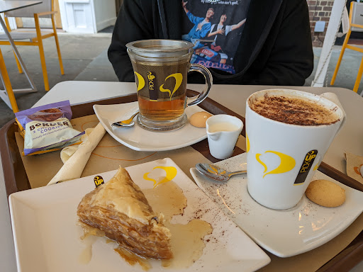 Ā Ā Ā Read moreI ordered a coffee and a donut from an impatient-looking server, who took my payment and then glared past me towards the next customer, clearly waiting for me to 'get the message' and move out of the way. No clear indication of where to, nor even if I actually should, wait - or if my order would be brought to my table. So I found a remote corner and waited. It was left totally up to me to watch the trays being loaded and coffees being made, nothing was called out, so I had to deduce which one was mine from the three similar orders in the serving area. Meanwhile, the barista and my server continued having a heated exchange behind the counter, with the barista giving me a terse nod when I carefully interjected to ask if one of the trays was mine. I couldn't get out of the line of fire fast enough! I went and sat down, quickly drank my coffee and chewed laboriously thru the warmed-up, chewy (yesterday's?) donut, then left with a real sense of relief. I won't be seduced by the cheery-looking yellow seats outside next time and I'll go somewhere else!