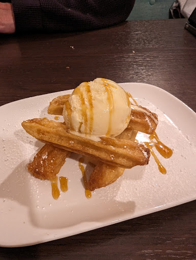Churros with vanilla ice cream and chocolate and Carmel sauce