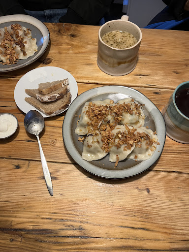 A nice little restaurant with really nice Polish food a great atmosphere and friendly staff. Cosy interior inside. Small menu with vegetarian options. We ordered a mix of dumplings and two soups: zurek with bread and borsch. The soups were delicious but in very small portions not even a full mug of it. Very little meat in Zurek and a lack of eggs didn't convince me that was the best choice. Another disappointing fact was that dumpings are only boiled not pan-fried and cash-only payments. Recommend to everyone to go and try freshly handmade dumplings.