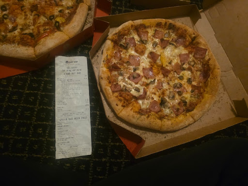 8:34pm came and someone turned up with an order and a reciept. The receipt is correct to our order. Except the only thing they actually got right was the cookies. The pizza and the garlic tear and share had the completely wrong toppings and base.