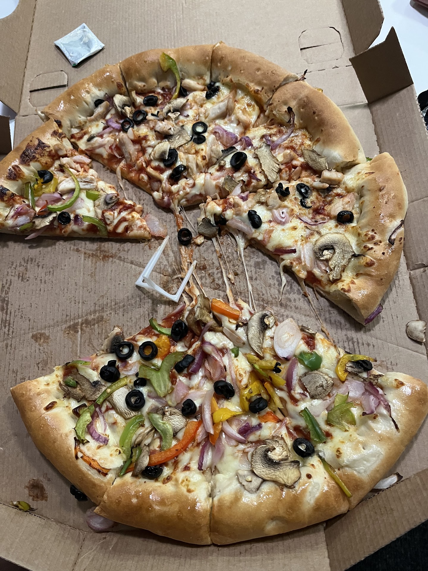 Although the pizzas are typical of any another Pizza Hut, the staff hygiene practices are not. On the 29/04/22 I saw two counter staff scratching themselves and continue to make food for other people. In particular one used the same hand they scratched their face with to grab handfuls of wedges from under the counter, go on to make pizzas with their bare hands and not washing their hands. I saw delivery drivers who had just come in from delivering food, still in all their motorbike gear come into the food prep area and put food in boxes. When I actually saw one delivery driver still in his motorbike clothes actually touch my son’s pizza with his unwashed hands…I asked for a refund and left! I couldn’t unsee what I saw! I won’t be ever going back. If that’s what I’ve seen whilst waiting, who knows what...