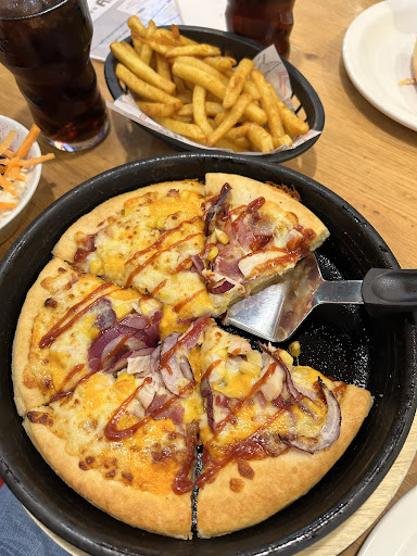 ๐ Our biggest complaint and the reason for the poor rating:- On arriving, the customer has to use their own device to order the food online, and it has to be PAID FOR in advance. For us, this was a first in Pizza Hut. It was a kerfuffle, involved downloading the app, etc. and felt counterintuitive to sitting down for a relaxing meal in a restaurant.