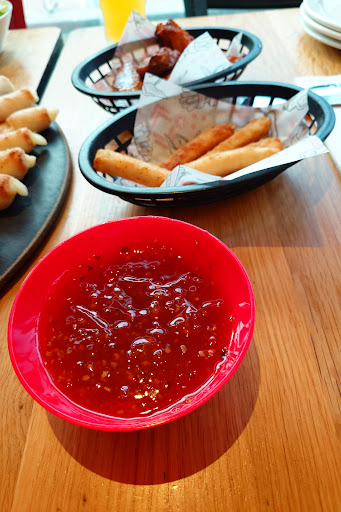 Our party ordered a portion of Halloumi fries, that was served with a hugely disproportionate amount of sweet chilli dipping sauce. I understand that there's generosity, but this just made the 5 fries look stingy! We continued to eat the dipping sauce and our 14" pizza and we still left half of it!