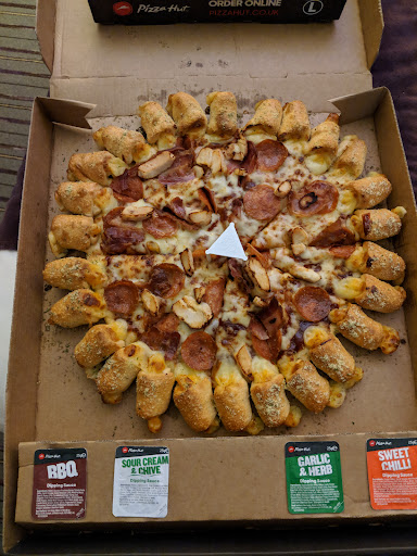 Disgusting and shocking establishment ordered 3 pieces on line an 2 were ready which they gave me and said the other one would be 2 seconds then they started asking each other where the pizza was i was stood there for a good 10 mins with my other pizzss getting cold i asked them wats going on they said it wasnt made i asked how it cant be made when ordered at the same time n these pizzas are cold so u will have to remake these i had been waiting for nearly half n hr now and had enough 2 ppl that came in ordered whilst i was there got there order 1 woman had 3 pizzss n a collections were going out i asked for a refund she said 1sec went round the corner came bk with the pizza slammed it on top with my receipt and said we dont do refunds i cant believe i got home n they had given me the first two pieces bk not made fresh ones as you can imagine they were freezing they looked awful worst pizza in my life what the hell is going on don't do refunds i hadn't even left the shop the staff are so rude 2 asain girls 1 asain man n a mix race girl wat a joke who employed these ppl are head office not checking on these places shut it down pizza hut should be PIZZA JOKE dont go there dont waste your...