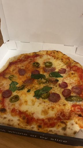 Read moreReally lovely authentic pizzas, no thick bready tasteless bases here, but heavenly thin bubbled soft & slightly cruncy charcoaled wonderfulness. Plus the toppings are fab, no meat feasts or veg Supremes to be seen - that the other 99% of pizza places are fixated on, where you get excited to spot olives as an 'out there' option.... These are pizzas as they're meant to be, modern ingredients & ideas to inspire you & make your mouth water. Their big pizzas are gargantuan, (biggest pizza I've ever seen!), & all though they may seem a little more expensive than your normal takeaway pizza joint, one of their large pizzas does me at least 3 meals, including a few cheeky 'Just one more bite (slice!) whilst I'm next to the fridge' moments. I've tried the butternut version which delish & made my own which also was pretty darned fantastic. This is the best pizza place in Brighton compared to any other restaurant or take away - & I'm not vegan or vegetarian, try it you'll never eat another veg supreme with extra olives ever again. NOTE I'd suggest not ordering when they're busy, got a terrible pizza tonight which is not like them. Burnt, missing toppings I'd paid extra for, caramelized onions were just soggy fried onions, not enough cheese (mostly tomato sauce). Just annoying as i was hungry & looking forward to it. However they promised a free pizza next time with no argument & were apologetic putting it down to a crazy busy Saturday night. Everyone's entitled to mistakes right? But yup lesson learnt order in the week not...