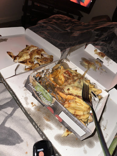 Order came in decent time, went to the door to get my food, was barely a hello, once I opened my food there was barely a smell to it (garlic bread cheese) had bubbles in it I'm guessing from the lack of garlic spread, cheese was dry, chewy and tasteless somehow?, it was honestly like eating bread but worse... opened up my bolognaise chips and cheese and the cheese was stuck to the top of the box, I thought surely you can't mess this up, low and behold the chewiest cheese I've ever had, it was like eating a chunk of dry goo. Place needs to be on kitchen nightmares, bet there's a few things Gordon would pick up haha. Only reason I ate it is because...
