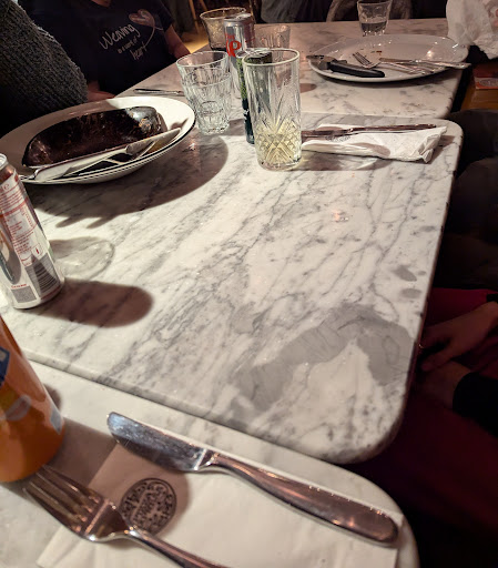We were served quickly and the drinks came really quickly - though my brother who just wanted water had to wait ten minutes for a glass to drink it from! The starters came by 7:50 and the first two mains came whilst we were still finishing our starters so we were impressed - until the rest of the mains still hadn't arrived ten minutes later. We asked the waitress who said she'd check, five minutes passed and we asked the waitress again and she came back with the receipt to check what we'd received - evidently to tell the kitchen to cook the 6 mains that we hadn't received! The two people who got their food were finished eating before ours arrived (pictured).