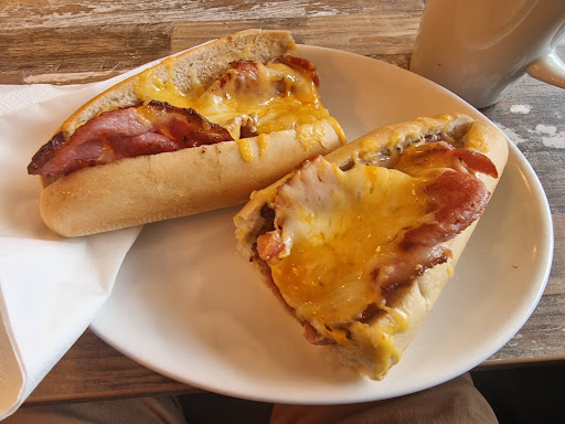 We had a tuna melt and a bacon and cheese melt, a tea and a hot chocolate. The food was fresh, well cooked, not greasy, prompt friendly service and such good portion sizes for the money.