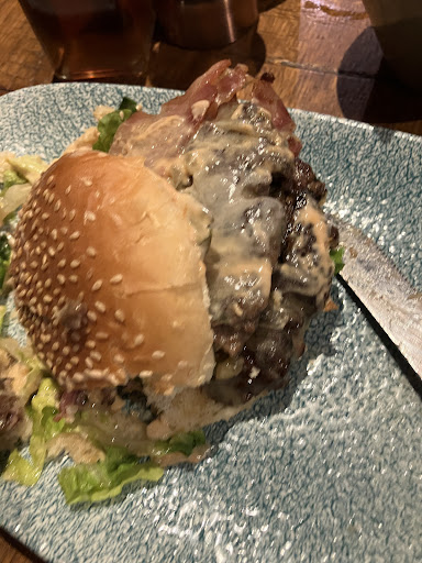 The burgers used to be special - happy to pay £14.50 for a really good burger - not any more. What came out was a small burger bun, a burger that was incredibly thin and dry, a slice of bacon and one of tomato so thin they couldn't be tasted. There was no side salad at all and the green content in the burger was one slice of gherkin and a bit of lettuce