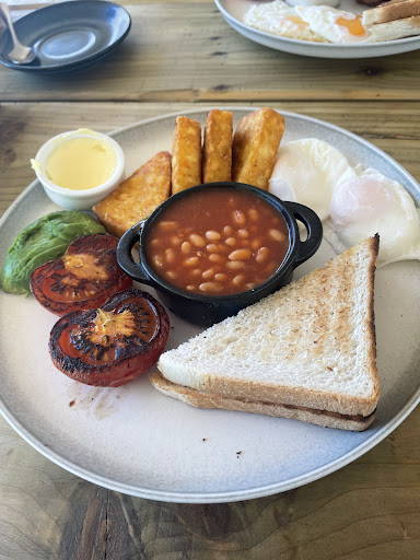 After 40+ minutes, our food came out, we were waving but they struggled to find us (because of the multiple cups the same colour!). Our food was placed on the table and then we were told they were out of certain items so had replaced them with others (without checking with us!). We were asked if it was ok but we’d waited 40 minutes and cleaned the table the best we could so just ate the food we were given (a cooked breakfast with 4 hash browns, an extra tomato (not even vine tomatoes as menu stated), and a “bigger portion” of beans to replace the missing items!). It’s quite poor that we weren’t told that items were out of stock when ordering, and that they didn’t even check with us for alternatives during the 40 minute wait. Further to this, the eggs were cold, the beans were cold, the rest was barely warm with the exception of the very hot hash browns. With a 40+ minute wait for the food, we expected the food to be hot (and as ordered!).