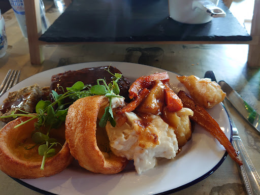 Read moreThis place is absolutely fantastic. Everything was so perfect and it is a place I would recommend for any age. As soon as you walk in the atmosphere hits you straight away. It is very welcoming, relaxed and warm, with lots of smiles. The cafe is off the main road but it has a sign outside so you know where to go. We ordered the quiche of the day and a burger meal, both were cooked fresh and tasted amazing. It took somewhere between 15-20 minutes to arrive. The staff were also extremely accommodating and helpful. The cafe took card, cash and contactless forms of payment. The cutlery, condiments and serviettes are placed on a free stand at a 90 degree angle between the door and till. There is enough choice of food to choose from and also vegan options. There are some fantastic deserts and scones, cream and jam. The drinks menu consists of teas, coffees and soft drinks. The cafe is big enough to dine in with a group of people. I also saw a reserved sign on one of the tables therefore I think the cafe may reserve a table for you. However I would check this though. Outside there are teepee tent stands with seating underneath. Therefore you may also choose to sit outside on a nice day. There is a small play area for children and a little area where there are some pigs, although they are fenced off. This is a great place to see as its really picturesque too, lots of green landscape to look out on. The cafe has wheelchair access on entry and exit. There is a free parking area next to the cafe too. I'm so pleased we came across this little gem but the real credit goes to Sam's Woof Wash company for...