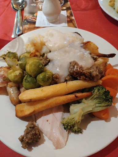 Read moreVisited sat 20/09/25. First impression, regular chain destination pub suitable for families. On entering no one to greet us. Bar man came around to check our reservation. Let's just say customer service was his strength. Impersonal, almost like he couldn't be bothered. Served us drinks at the bar, again little customer service. Not even a smile. Ignored request for no ice in one drink, no ice offered in refil soft drinks. Asked for a tab to be opened, no "certainly sir/madam" just "put your card in!" As a seasoned hospitality worker and graduate of the trade, this person is not doing your business any favours. I fully appreciate that to keep costs competitive, staffing is minimal, hence no table service, but having to remember the drinks and food orders for a party of 10 was challenging. On to the food. The carvery was ok. Menu boasted 14 hour cooked meats. Turkey was ok, gammon ok but beef didn't benefit from a slow cook. If indeed it was. It was clear it was a very cheap cut, lacked any real flavour and thewey. Toasties described as "fluffy," I'd Hazard a guess they were waxy potatoes not floury. So not fluffy at all. Stuffing better than Toby carvery. Yorkshire's good. Veg ok. Cauliflower cheese had a twangy taste, not pleasant. Gravy lacked any real depth of flavour. Parsnip replicate s in honey, magnificent. Wish I could replicate at home. Waiting staff happily presented the birthday cake we brought with us. Didn't have dessert but they all looked tempting in the display case. On balance the food was as expected for the price charged. Certainly not expecting the Michelin guide to be listing in the near future, but for a good old feed it was just right. The only real negative was the lack of table service when we wanted drinks replenishing and the negative welcome we received on entry. Other than that I'd rate at 4.5 review only works in single stars. Hopefully my honest, balanced, review will be taken at face value and if lessons can be learnt, all the better. Would we return? Based on cost v quality v customer service, definitely yes but we'd known what to...