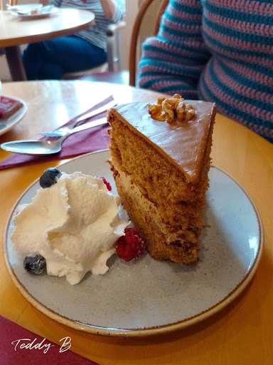Ā Ā Ā Read moreTypical tea room vibe, cosy fire, lovely staff, lots of cakes, good coffee and a very wide range of good quality tea. They even sell ayurvedic tea! They offer almond milk too which is a better plant-based option to the usual soya. The only downsides are: the loo. There's only one, tucked under the stairs, out the back, so sometimes a queue, and the seating. I can't put my finger on why the seating doesn't work but unless you manage to get one of the three sofa's or the window seat, you are likely to get knocked by people walking to the loo or coming in and out - you'll see what I mean. If you get a sofa then you will be very comfortable. I've not tried the savoury options but the cakes here look lovely but are too way sweet for me. I don't think they are made onsite. There's a good mix of locals and visitors in here, a fire in the colder months, newspapers and the option to take away. It's...