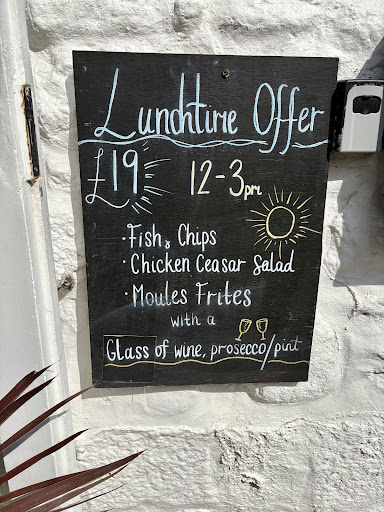 Very disappointing visit to Porthgwidden Beach Cafe Please learn from our experience: We live locally and have taken all our summer visitors to eat at this Cafe. The venue is scenically beautiful and previous visits have been much enjoyed. However, on this occasion we arrived on time for our booking at 2pm, our party of 3 all ordered both starters and mains, two asked for fish and chips and one ordered mussels and frites. One asked for a pint of larger (£5.95) and the other two of us ordered 2 glasses of Rose wine (there were only 2 options on the menu and we asked for the cheapest at £11.95 each). The people who served us were very pleasant. On leaving we paid our bill and added service charge and I sat outside whilst our guest visited the Ladies. It was then that I saw the notice board at road level (picture attached) offering a lunchtime deal. At no time during the ordering process were we made aware of it and it did not appear on the specials menu. We paid full price for our food and included a generous tip. Being surprised I went back into the Cafe to point out that we had missed the offer and was told by a young waitress that it is not promoted inside the cafe and that the wine I had ordered was not the from the bottle offered in the deal - but it doesn’t appear on the menu, so how would I know! Fair to say we had ordered large glasses, but would gratefully have accepted the free glass and ordered and paid for a second. She did not recognise the pint of larger at all. I felt somewhat disappointed by the waitress' manner and hope that staff are briefed to make customers aware of the offer or, if management don’t want to honour the deal, that the board is removed. To all visitors I would say that we will visit the Cafe again, the food and ambiance are very pleasant but PLEASE do make sure you note the outside board and ask the staff if there are any available lunch time offers on the day.