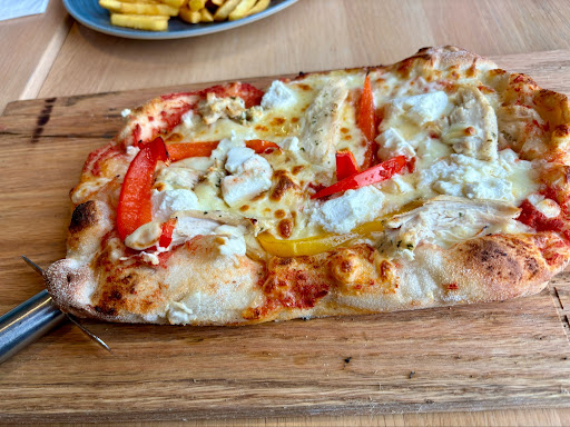 Read moreFood is delicious, had the King Prawn Risotto and Calzone Pizza and also the flat bread share platter. Had higher expectations for the truffel and parmesan fries as they are a favourite of mine, but I was disappointed to see just regular french fries with grated parmesan on top, any effort on preparing them. Staff is so unprofessional- 4 different girls came to our table, each every minute....we were Obviously still looking at the menu and we felt under pressure,like they were rushing us. As a person in Hospitality business, I am expecting some sort of common sense from them and communication between each other. Another thing - the girl that took our drinks order was not aware of the Sims they have. I asked for Hendricks and tonic and her reply was 'what is that?" I doubt they have more than 3 gins and she could only tell me Bombay. Still at the middle of our dinner, we were Obviously not finished yet and one of the waitresses passed our table staring at our plates for way too long. Even with our plates half full and cutlery on the side of them, she still couldn't assume we had not finished yet! We felt pressured again- can we not stop eating for a minute so we can have a nice and relaxed conversation and evening?!? We wanted a relaxed evening for celebration ... otherwise we would have gone...