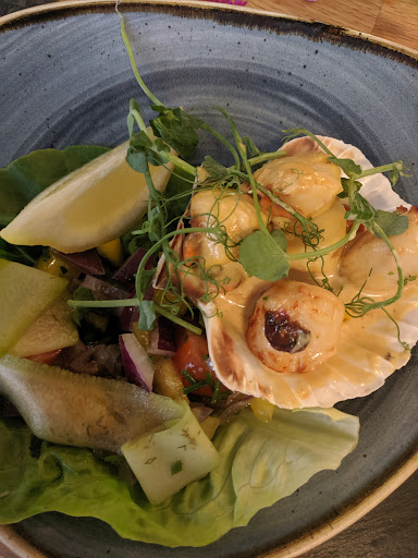 Now onto the food - we both opted for seafood (both for starter and main) and it was excellent. The crab bisque starter was absolutely packed with flavour and the mackerel pate was also very nice. No complaints there. For mains we both ordered the monkfish in a creamy sauce and the fish was cooked to absolute perfection, and an excellent sized portion for the price. The monkfish was presented in a very nice and refined way, although slightly at odds with the vegetables/sides which I would describe as more rustic. Regrettably, the truffle and parmesan chips we ordered were too dark on the outside (oil too hot/cooked too long) and I couldn't taste much truffle/parmesan.