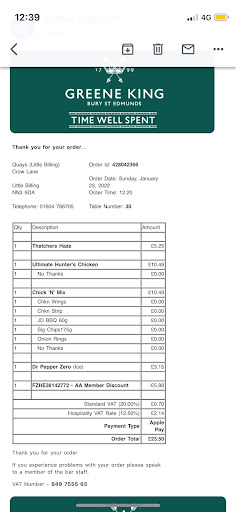 UPDATE - so a week or so after visiting, my friend got a parking ticket. I haven't yet (we arrived in two cars) but am fully expecting one. We turned up on an evening that was very dark and raining heavily, signs were not visible (and even one we found on Street View is at a very high level). Apparently parking is free to Quays guests but we were not advised by staff of any machine or list that we had to give our registration numbers to avoid the shock. My friend's ticket was rescinded by Euro Car Parks on the grounds of showing a valid meal receipt and booking but they did not take kindly to the comments about their poor signage. This has compounded our poor experience and will ensure that we will not return. The hospitality trade has suffered enough over the last few years due to the pandemic and cost of living crisis, having such a parking scheme only goes to further discourage visitors, not aware of any other pub in the area that does this so will go to...
