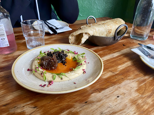 Our recent dining experience was nothing short of exceptional! We started with the hummus, which was beautifully paired with date confiture and chilli oil, a perfect combination of flavours. The Iraqi pitta that accompanied it was so fresh and delicious. We always order the infamous Laverbread falafel, and it was absolutely divine! This dish is always a crowd pleaser and a must-try for anyone visiting Queen of Cups. We also had the seasonal asparagus with purple broccoli, served on top of a bed of whipped Westcombe ricotta, smoked almonds, shatta and seasonal pickles