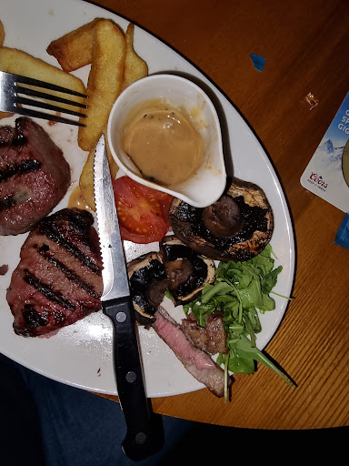 Food - as expected. Surprisingly enough I wouldn't recommend ordering steak at a beefeater. Our 3 year old had the spaghetti and loved every second of it. We just only wish we had ordered the same. I ordered a £20 ribeye with a prawn skewer. The steak was unevenly cut with one end being rare and the other well done. The skewer arrived several minutes after I had finished the rest of my meal.
