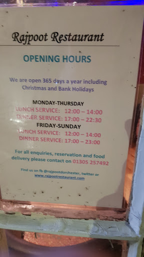 Read moreWe were out for dinner last night with friends & family at the Rajpoot. Our table was booked for 8pm. Firstly, our table was not ready at this time, we were initially ok about this and didn’t mind waiting providing we could have a drink. We ordered drinks. It took them 20 minutes to serve us drinks!! While we stood in the lobby. No one asked us if we would like to look at menus while we waited!! We had to ask!! We didn’t get seated to our table until 8.40pm!! We then waited a further 25 minutes to get some poppodoms!! Still no food order taken. We didn’t actually get our main course until 10.05pm!! We have never experienced such bad service EVER!! It was bloody awful. We would’ve walked out but it was a birthday meal and family had travelled to see us! It would’ve been quicker to have ordered a take away from another Indian restaurant and had it delivered to our table. The food was nothing special either. All in all a terrible experience and we will let others know to avoid the place. No apology and full price charge!! Absolute joke!! Everyone in the restaurant had the same experience as we conversed with other tables about...