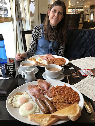 Cons: we didn’t feel it was good value for money (just shy of £11 for each breakfast, so for that price we’d either expect for there to be more items and with everything included, such as mushrooms, tomatoes & black pudding, or for the quality of the ingredients to be better) cheap ingredients (e.g. equivalent of Tesco value own brand sausages & bacon) and some items had a bit of funny taste, like they’d been cooked in really old oil, the hash browns had black bits on, suggesting the oil wasn’t clean, etc. not table service (not sure why, as there weren’t many people in there), and the waiter didn’t smile or exude warmth/friendliness