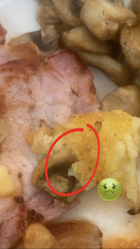 This was not the first, nor second, but the THIRD little black hair that resided in my Full English this morning.