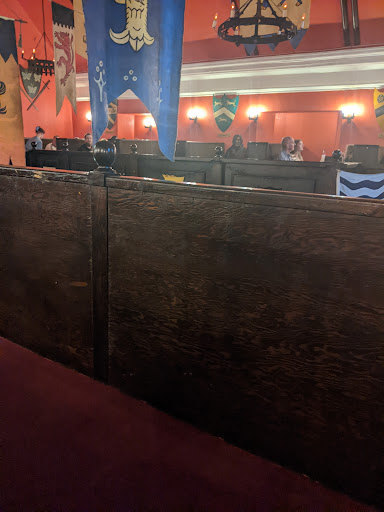 Read moreReally lovely building and decorated fantastically inside! Medieval themed to the point the staff are even dressed up! There's two floors with tonnes of seats however they are a tight squeeze. 6 of us went on Saturday night and it was really tight with barely any room to move on the table. We would have preferred being seated at a bigger table for comfort of ease. The staff overall were really friendly and knowledgeable. The menu choice isn't very big but a decent range overall although only one vegetarian option (spicy bean burger) we had jalapeno poppers to start which were a very generous size and scorching hot, really tasty! The wedges and blue cheese dip were also chosen, the dip was really tiny though so we asked for another one. We all had a rack of ribs and chicken in the rough for our mains. The BBQ ribs were absolutely delicious! Thick meat, drenched in a really flavoursome BBQ sauce. Highly recommend them! The chicken in the rough though, was exactly that. It looked overcooked and was really dry. Literally needed a sip of drink with every mouthful just to get it down. Wouldn't recommend that unfortunately. Due to the staff being a man down in the kitchen, we had to wait an hour between starters and mains which we know couldn't be helped but because it was so busy in there, we were sat squeezed together, it got pretty hot and uncomfortable pretty quickly. The mead was a nice experience to try, the strawberry flavor was very sickly but the BlackBerry flavor was lush. You can mix it with lemonade if it's too strong. They also provide a small salad bar which had a nice selection of food. I'd recommend sharing one between two of you as the dish size again is generous. Overall it was a really cool experience and I'd definately recommend visiting but avoid...
