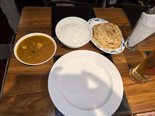 Ordered a lamb dosa, chicken curry, vegetable rice and mango lassi. Been advised from the waiter everything is cooked fresh and may take some time for food to arrive. There was a large table with 6 adults and 2 children and my table, therefore only 2 tables being served. Restaurant was empty however reservations dotted around on all tables. A few walk in customers were being turned down. Table in front of me waited for almost an hour for food. For my 3 items I had to wait 45 minutes! I was just about to leave until the waiter assured me the food will arrive within 1 minute. My food arrived as assured by the waiter.