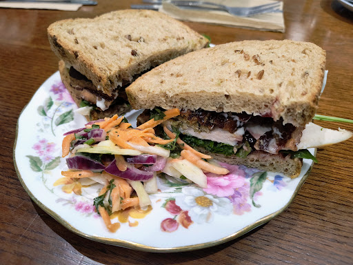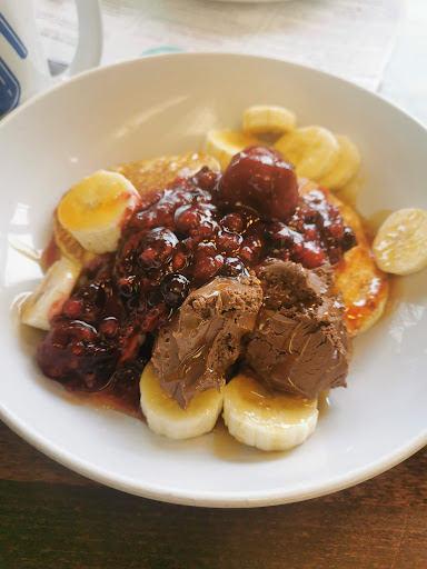 Read moreMy partner suggested this one for a coffee and brunch one mizzly weekend. Plenty of choice on the menu, and loads of options for those of us who eat breakfast but don't enjoy eggs or avocado- a rarity these days, thanks! I deliberated for ages but decided on a pancake stack with fruit compote and Nutella. I got 5 pancakes, some were a little tough around the edges but otherwise nice. The fruit was tasty and there was a dollop of Nutella that'd feed a family for a week. Even as a seasoned chocoholic, I couldn't finish it. My partner had some soup and a vegan sandwich. He loves a good cheese and carrot sandwich but raved about this one, all I remember is that it had beetroot and mint sauce in it but he seemed very impressed, I think the mint sauce topped it off. Ingenious. Coffee was nice and we had a good morning....